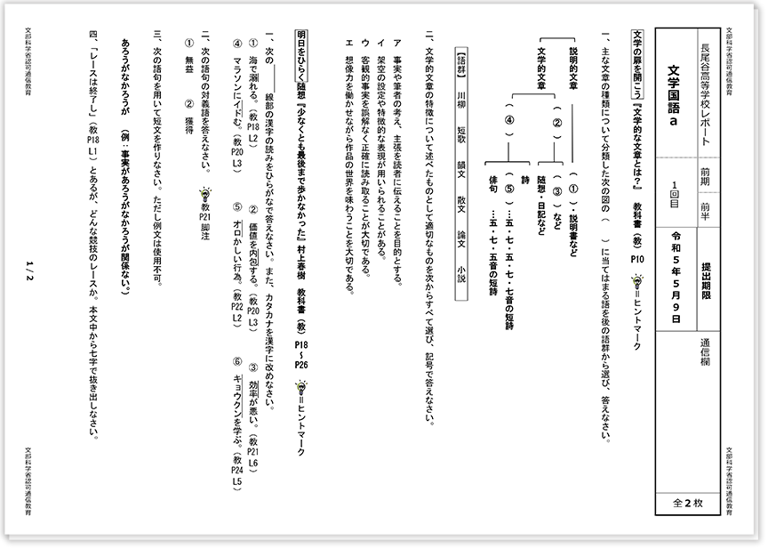 (出典:石川県立金沢泉丘高等学校(通信制課程)「レポートの例」)長尾谷高等学校の例