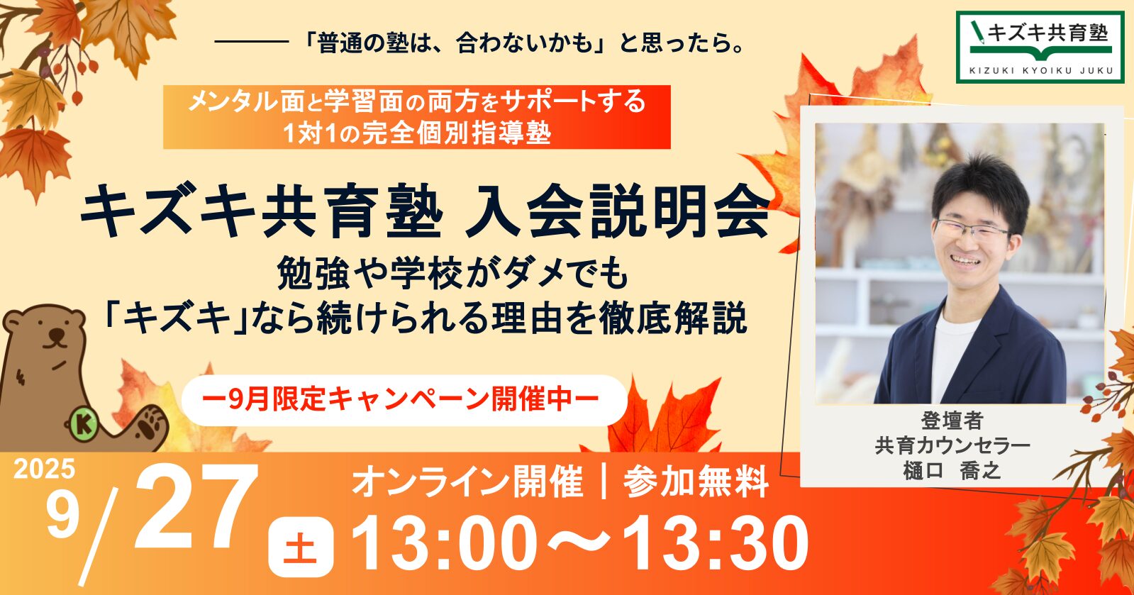 【9/27(土) 13:00から】キズキ共育塾オンライン入会説明会を開催します〜「キズキ共育塾なら続けられた」理由を大公開!〜