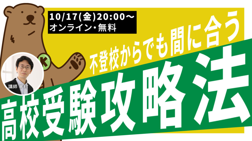 - 対象:不登校からの高校受験を考える保護者様、ご本人様