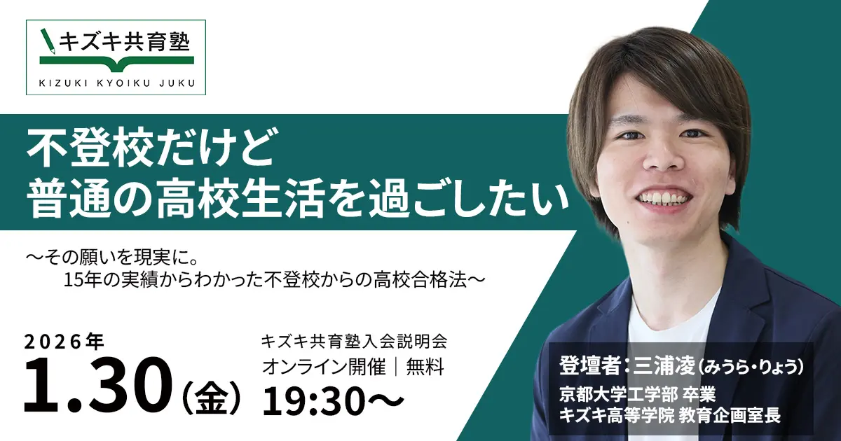 2026年1月30日(金)キズキ共育塾は、無料のオンラインイベントを開催します。