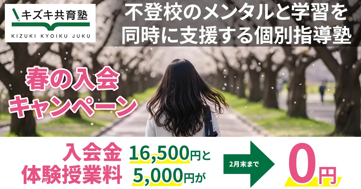 【2月限定】キズキ共育塾・春の入会キャンペーン〜この春、なりたい自分へ。不登校から逆転合格を実現する〜